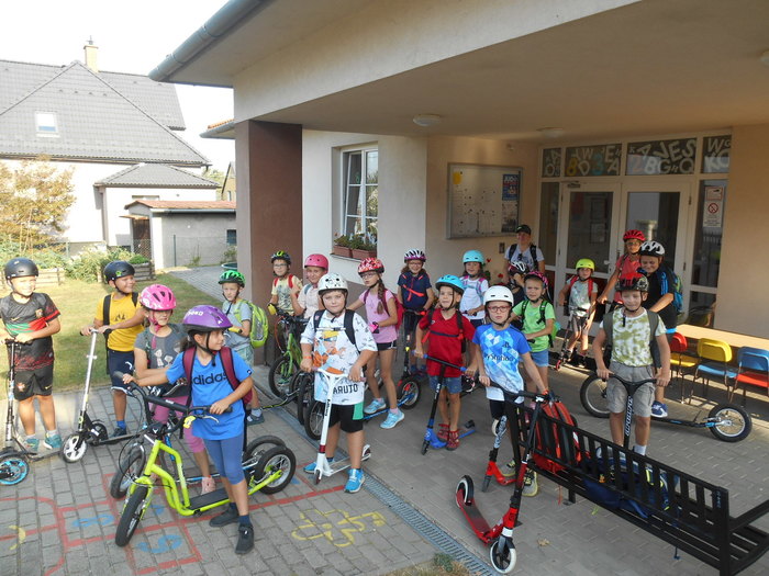 Úvod > Základní škola > Fotogalerie ZŠ > Výlet na koloběžkách 3.r. - rybníky Pod Hurou