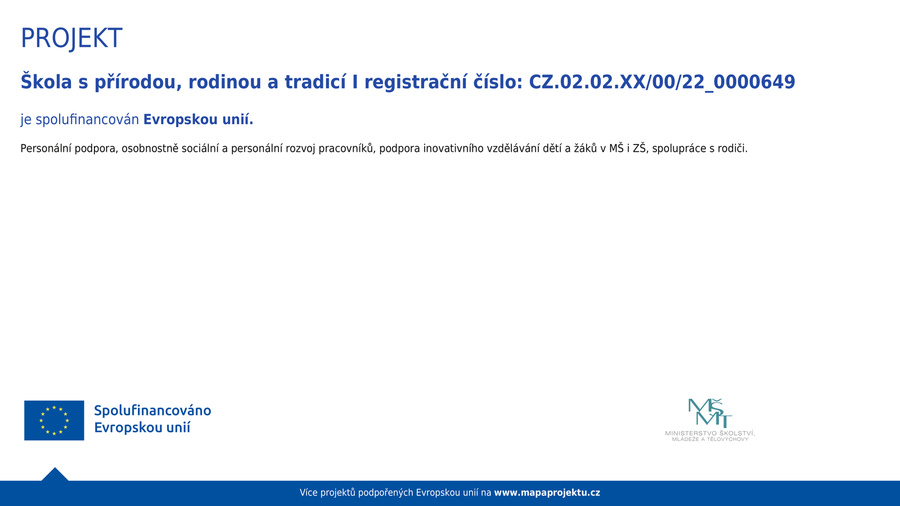 Personální podpora, osobnostně sociální a personální rozvoj pracovníků, podpora inovativního vzdělávání dětí a žáků v MŠ i ZŠ, spolupráce s rodiči.